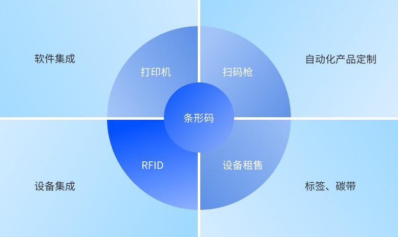 上海鋯瑞技術(shù)有限公司業(yè)務(wù)分為9大模塊,條形碼,RFID,打印機,掃描槍,軟件集成,設(shè)備集成,自動化產(chǎn)品定制,標簽碳帶和設(shè)備租售。 以條形碼和RFID為起點,以打印機,掃描槍和標簽碳帶為基礎(chǔ),逐步技術(shù)延伸,層層遞進,實現(xiàn)識別軟件系統(tǒng)開發(fā),自動化檢驗設(shè)備集成,自動化產(chǎn)品定制等自主創(chuàng)作研發(fā)能力,滿足各類企業(yè)物聯(lián)網(wǎng)應用需求。